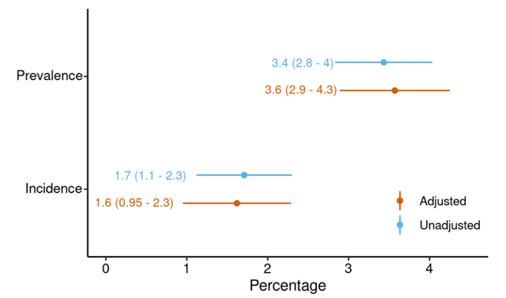 The KoCo19 baseline study took place from April to June 2020 including 5313 participants (age 14 years and above). From November 2020 to January 2021, we could again measure SARS-CoV-2 antibody status in 4433 of the baseline participants (response 83%). Participants were offered a self-sampling kit to take a capillary blood sample (dry blood spot; DBS). Blood was analysed using the Elecsys® Anti-SARS-CoV-2 assay (Roche). Questionnaire information on socio-demographics and potential risk factors assessed at baseline was available for all participants. In addition, follow-up information on health-risk taking behaviour and number of personal contacts outside the household (N = 2768) as well as leisure time activities (N = 1263) were collected in summer 2020.